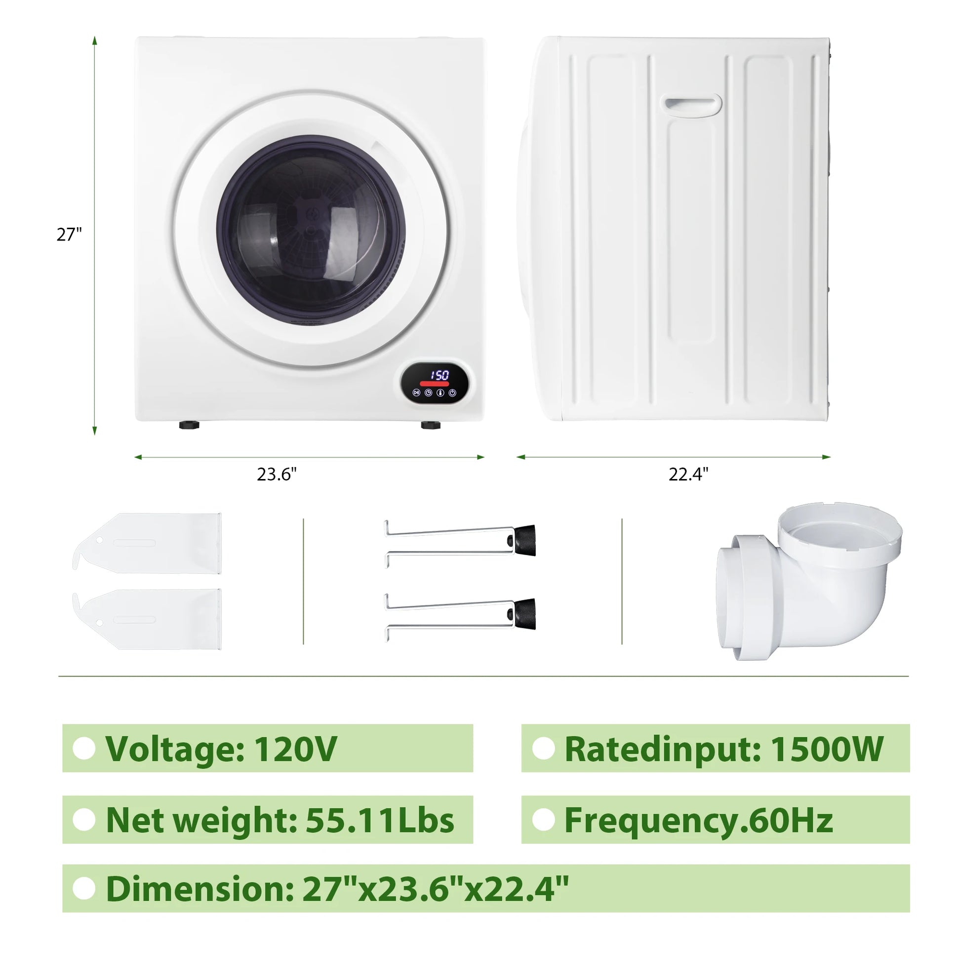 【Thoughtful Design】110V Dryer: 105° wide-angle door opening design for easy loading and unloading of clothes. The transparent window allows you to observe the drying status of your clothes at any time. If the door is opened while the machine is running, the machine will automatically stop, ensuring your safety. The lint filter effectively filters lint, preventing lint from flying out. The handle design makes it easy to move the machine.